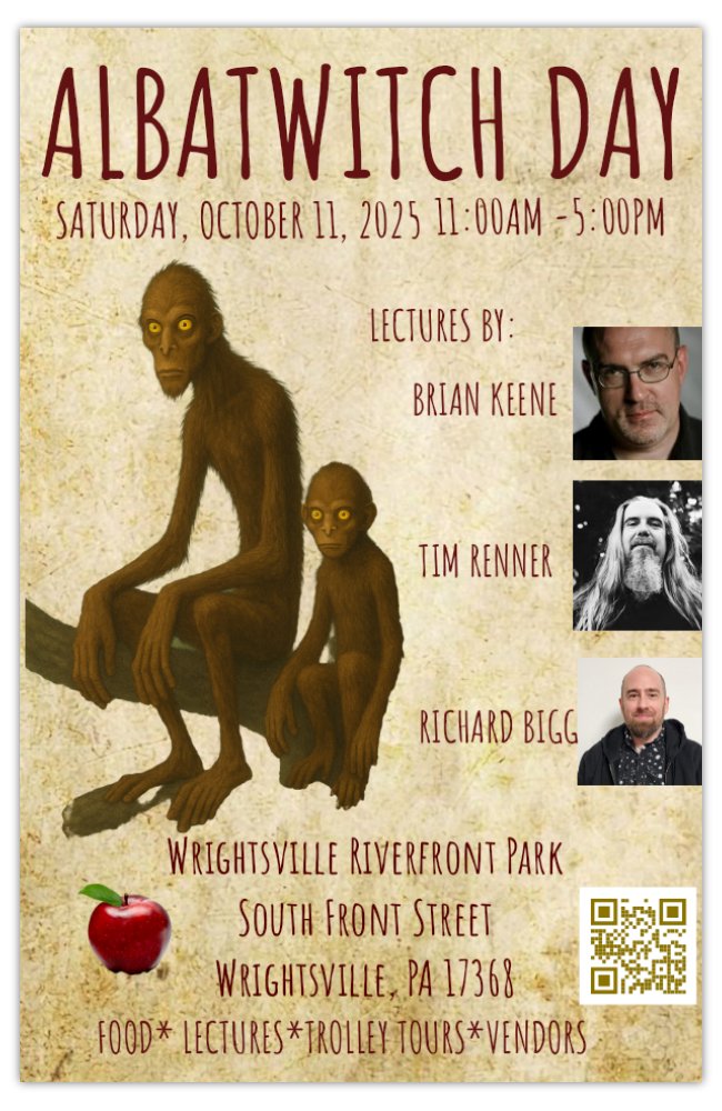 Come to Columbia County PA, October 11, for art, food, vendors, and lectures from Pennsylvania's cryptozoological community. Rich will be presenting stories from the Schuylkill region, and maybe you'll spot the legendary albatwitch!